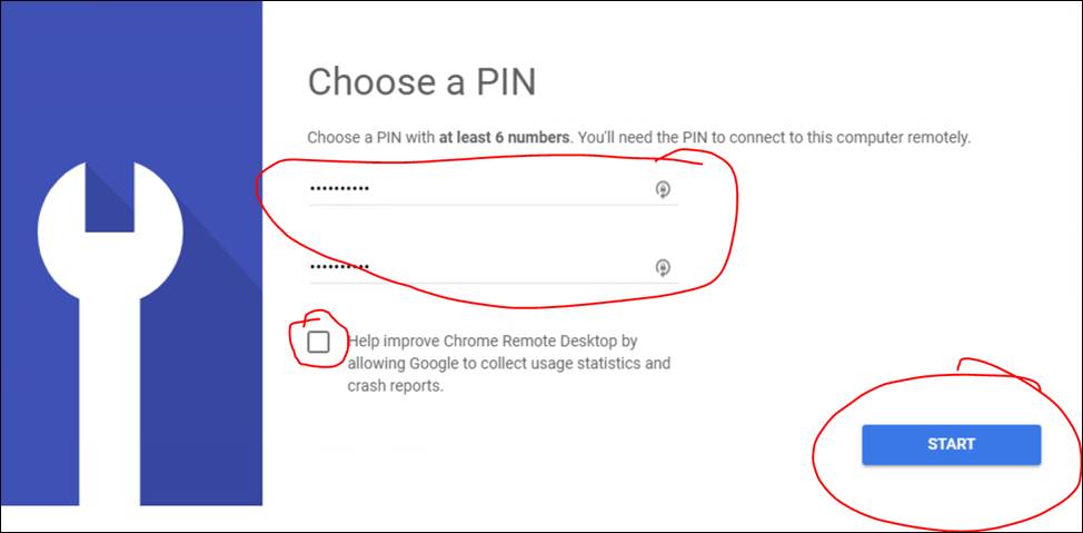 - Choose a pin you could remember (do not save it later on when connecting as this is the only thing preventing someone who steals your Google credentials from connecting to your work computer)